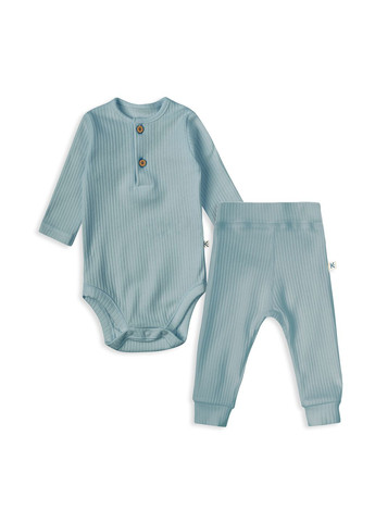 Сертифікат OEKO TEX Standard 100; Фурнітура: безнікелева (Німеччина); Вид тканини: інтерлок; Склад: 100% бавовна; Набір із двох виробів: боді з довгим гукавом та штани; Колір основної тканини: зелений; Принт: однотонні.