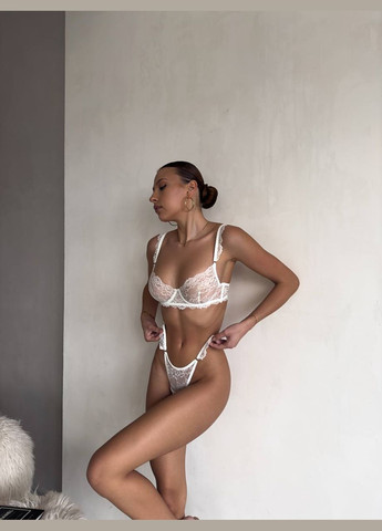 Комплект з сіточки . Чашечка подвійна , без паралону . Трусики стрінги на регуляторах .Ластовиця бавовняна