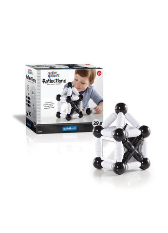 Магнітна іграшка-конструктор із чорно-білими елементами. Деталі великого розміру з рифленою поверхнею для зручного тримання та вбудованими магнітами ідеально підходять для маленьких рук. Елементи різного розміру та форм дають можливість створювати різноманітні фігури. Металеві кульки призначені для надійного поєднання елементів. Матеріали: пластикові стрижні, металеві кульки, магніти, акрилові панелі. Іграшка розвиває творчі здібності, самосвідомість, принципи симетрії, тактильні відчуття. Конструктор підходить для навчання дитини за системою Монтессорі. Вік: від 2 років.
