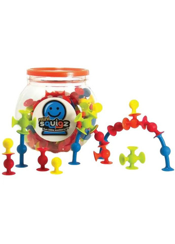 MiniSquigz - великий набір з 75 маленьких різнокольорових присосок. Всі елементи відмінно кріпляться до будь-якої гладкої поверхні та один до одного. Чи пробували їх роз'єднати? Ці "малюки" тримаються дуже міцно і не залишають слідів. Їх можна мити. У наборі 5 видів силіконових з'єднувачів з різною кількістю присосок: сині та червоні з 2-ма, помаранчеві з 3-ма, світло-зелені з 4-ма, лимонні з однієї. У вас може вийде фантастична тривимірна конструкція, спробуйте! MiniSquigz як вітаміни для рук та мозку! І чудовий подарунок для хлопчика та дівчинки. Цей барвистий набір зручно брати із собою у кафе, машину або на дачу. Діти будуть зайняті надовго, адже "індекс захопленості" конструктора дорівнює 9,6 із 10 одиниць за шкалою Fat Brain Toys. Рівень IQ: 171 одиниць (High Genius за шкалою FBT).