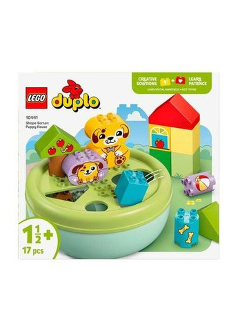 Друже, нумо побудуємо будинок для милих цуценят! Конструктор із серії Duplo, який складається з великих і яскравих деталей, підійде для найменших. Він допомагає їм вивчати кольори і форми, розвивати дрібну моторику та логічне мислення.Як гратися?Розкажіть малюкові історію цуценят, які потребують домівки. Найперше зберіть сортувальник фігур, далі попросіть дитину вставити собак та інші елементи в спеціальні роз’єми.Комплектація: 17 деталей.