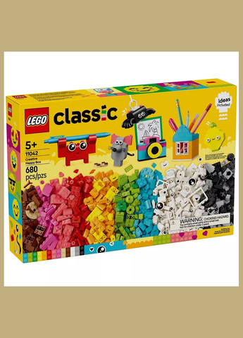 Гра Конструктор LEGO Classic Щасливий творчий набір – ідеальний старт для маленьких будівельників, які хочуть перетворити свою уяву на яскраві та практичні творіння. Завдяки 680 різнокольоровим кубикам і спеціальним деталям можливості для творчості безмежні. Посібник допоможе створити 10 захопливих моделей, які можна легко перетворити на 12 нових іграшок, а потім на унікальні власні шедеври. У наборі є веселі персонажі, як-от кіт, мишка, лимон, черв’як і смайлик, а також підвісні моделі павуків, бджіл і птахів. Деякі конструкції, наприклад краб, мавпа і будиночок, мають місце для зберігання дрібних речей, а квітка, камера, кактус, серце й маркер оснащені кліпсою для нотаток чи листівок. Діти зможуть не тільки створювати, а й прикрашати свою кімнату власноруч створеними предметами, розвиваючи уяву та креативність. Розвиток Гра з конструкторами чудово розвиває дрібну моторику рук, стимулює та покращує просторове та образне мислення, логіку, координацію рухів. Особливості: Бренд: LEGO; Країна бренду: Данія; Країна виробництва: Угорщина; Рекомендований вік: від 5 років; Матеріал: пластик; Габарити упаковки: 7х26х38 см; Кількість деталей: 680.