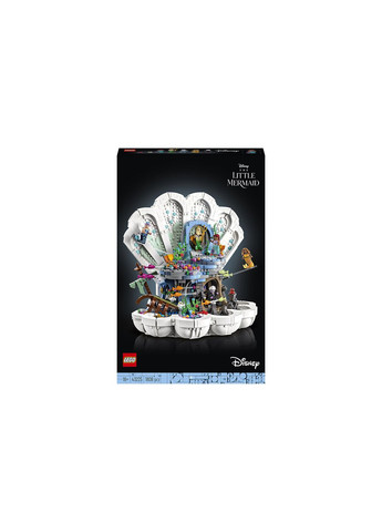 Поділіться своїм захопленням диснеївською «Русалонькою» з допомогою цього набору LEGO Disney Русалонька. Королівська мушля (43225). Цей деталізований набір із 1808 деталей, заснований на майбутньому повнометражному фільмі «Русалонька», демонструє 3 ключові зони: тронну скелю короля Тритона, схованку Аріель, наповнену скарбами, і таємниче лігво Урсули — і все це в унікальній мушлі, що створена для демонстрації. Колекційна модель, що викликає спогади Цей високоякісний деталізований набір LEGO містить пʼять відомих персонажів з майбутнього фільму «Русалонька»: мініфігурки диснеївських принцес, як-от Аріель, Карина, Мала, а також мініфігурки короля Тритона й Урсули, і фігурки LEGO Себастьяна й Флаундера. Збудована мушля стане приголомшливим елементом для демонстрації. Відкрийте для себе підводний світ з допомогою цього унікального набору із серії LEGO Disney Princess! Почніть досліджувати, будуючи тронну скелю короля Тритона, печеру земних скарбів диснеївської принцеси Аріель і таємниче лігво Урсули. Відкрийте для себе безліч захопливих деталей з анімаційного й повнометражного фільмів «Русалонька», плаваючи з Аріель, а потім розташуйте цю приголомшливу модель для демонстрації як елемент декору!