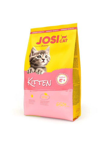 для вирощування кошенят і їх мам в період вагітності або лактації; легкозасвоюваний, без зернових і з живильною лососевою олією; додаткова порція добірного м'яса свійської птиці для відмінного смаку, який сподобається навіть найменшим кошенятам (відповідає приблизно 140 г свіжого м'яса на 100 г корму); містить спеціальні харчові волокна, які запобігають утворенню клубків вовни в шлунку; виготовляється в Німеччині і проходить ретельну перевірку у власній акредитованій лабораторії; корм містить високоякісні, здорові і натуральні інгредієнти, які не є генетично модифікованими; без додавання консервантів, штучних барвників і ароматизаторів; сухий корм Josera не випробовується на тваринах; без додавання пшениці, сої, цукру і молочних продуктів. Склад: сушений білок домашньої птиці, сушений; жир домашньої птиці; картопля, сушена; горохове борошно; бурякова клітковина; тапіока, сушена; картопляний білок; риб’ячий білок, гідролізовнаий; печінка домашньої птиці, сушена; лососева олія 0,50 %; дріжджі; мінерали; корінь цикорію, мелений (природне джерело інуліну). Аналітичні складові: протеїн 36,0 %; жир 22,0 %; сира клітковина 2,0 %; сира зола 7,0 %; кальцій 1,35 %; фосфор 1,05 %; магній 0,09 %. Харчові добавки в 1 кг: 24.000 М.О. вітамін A; 1.800 М.О. вітамін D3; 220 мг вітамін E; 15 мг вітамін B1; 20 мг вітамін B2; 20 мг вітамін B6; 100 мкг вітамін B12; 50 мг кальцій-D-Пантотенат; 90 мг нікотинова кислота; 5 мг фолієва кислота; 1.000 мкг біотин; 1.600 мг таурин; 175 мг залізо (сульфат (ІІ) заліза, моногідрат); 150 мг цинк (гліцин-хелат цинку-гідрат (твердий)); 15 мг марганець (марганець-(II)-оксид); 18 мг мідь (мідь (II)-гліцин-хелат-гідрат (твердий)); 1,80 мг йод (кальцію йодат, безводний); 0,25 мг селен (селеніт натрію). Технологічні добавки: Антиоксиданти: екстракти, що містять токоферол та є природного походження. Рекомендацації по годуванню: Забезпечте кошеняті постійний і безперешкодний доступ до свіжої питної води. Норми годування носять рекомендований характер. Адаптуйте годування до індивідуального рівня активності вашого улюбленця. Кошенята вік кошеняти, міс корм, (г) на 1 кг ваги кошеняти на добу 2 50 3 45 4 40 5 35 6 30 7-12 20-30 Вагітні кішки вага, кг корм, (г) на добу 2-4 40-90 4-6 90-140 6-8 140-180 Фасування: 400 г, 2 кг, 4,25 кг, 10 кг