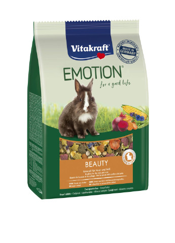 Emotion® Beauty Selection Adult Rabbits - це збалансований раціон, що містить всі необхідні для повноцінного розвитку тварин, поживні речовини. Він розроблений ветеринарами, з урахуванням потреб домашніх улюбленців, застосовується для дорослих морських свинок. У складі продукту міститься сира клітковина, необхідна для зубів, поліпшення травлення, біотин для здоров'я шкіри та вовни, а також: корисні овочі (гарбуз, буряк), злаки в асортименті, яблука, екстракт юкки Шідігера. Продукт збагачений мікроелементами (цинком, йодом, залізом), вітамінами, не містить консервантів, штучних барвників, ароматизаторів.