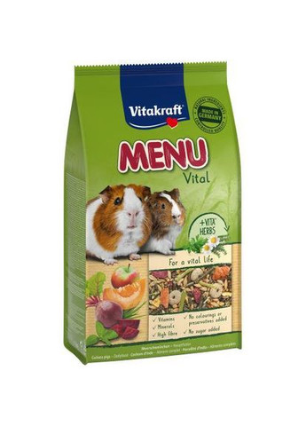 Цей 100% беззерновий корм для морських свинок, припаде до смаку вашому вихованцю. Його споживання сприяє процесу природного стирання зубів завдяки своїй особливій формі. Продукт багатий природними вітамінами, мінералами, поживними речовинами та ненасиченими жирними кислотами для здорового зростання. Завдяки багатою клітковиною моркви, насінням льону та фенхелю, м'яті перцевої та пребіотичного інуліну з пастернаку продукт сприяє правильному процесу травлення. Петрушка у складі корму є додатковим джерелом вітаміну З. У продукті високий вміст сирої клітковини. Корм збагачений гармонійним набором лікарських трав та овочів, таких як чорний кмин, ромашка та буряк. Продукт можна використовувати як основний корм. Оскільки всі компоненти спресовані в гранули, вибіркове годування неможливо, тому ваш улюбленець з'їдатиме корм повністю, це важливо, оскільки при вибірковому харчуванні можливе виникнення дефіциту поживних речовин. У кожного шматочка однаковий склад, тому ніяких харчових вад не може виникнути. Продукт не має у своєму складі штучних добавок та цукру, тому абсолютно безпечний для тварини. Переваги та особливості: повноцінне живлення для морських свинок; 100% натуральний корм; не містить зернових; сприяє правильному процесу травлення; підтримує природний процес стирання зубів; стимулює життєві функції. Склад: лугові трави передгір'я Альп (що складається, серед іншого, з тимофіївки лугової (тимофіївки), лисохвоста, гладкого вівся, півника, пуховки, мятлика лугового, конюшини червоного, ранункулюса солодкого, опеньків, овсюга золотистого, кульбаби лікарської, подорожника звичайного, очеревини лікарської, маргаритки, маргаритки лікарської, горицвіту звичайного, конюшини, пастернаку, щавлю, вересу германдерського, обманщика, багаторічного райграсу, щирки м'якої, вікі пучкової, віки пучкової, віки пучкової жовтця, тріскачки, коров'ячої петрушки, деревію), горохові пластівці, бобові пластівці, морква 3,2%, пастернак, насіння льону, насіння чорного кмину, м'ята перцева кропива 0,8%, червоний буряк, петрушка 0,7%, ме ромашки. Аналітичний склад: протеїн 13,2%, вміст жиру 3,6%, сира клітковина 19%, сира зола 14%, кальцій 9000 мг/кг, фосфору 3950 мг/кг, натрію 950 мг/кг. Добавки на 1 кг: вітамін А 14300 МО, вітамін С 715 мг, вітамін D3 990 МО, вітамін Е 88 мг, заліза(II) сульфат моногідрат 71,5 мг, купрум(II) сульфат пентагідрат 13,8 мг, манган(II) оксид 55м йодат безводний 1,3 мг, селеніт натрію 0,3 мг. Технологічні добавки: бутілгідрокситолуол 11 мг. Поради щодо годування: Наповнюйте годівницю тільки тоді, коли вона майже повністю порожня. Давати стільки їжі на день, скільки можна повністю з'їсти за 24 години. Крім беззернових, завжди має бути достатньо свіжої води та сіна. Умови зберігання: Зберігати у прохолоді та сухому місці! Фасування: 1,35 кг