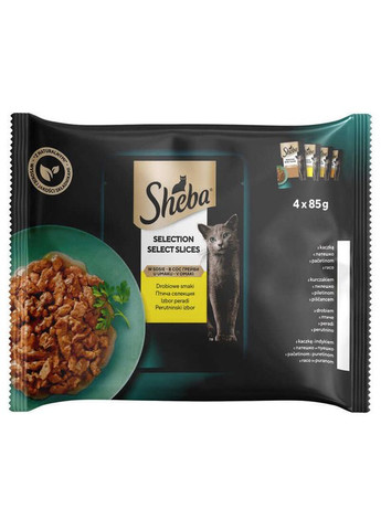 Асорті включає чотири смаки: курка, качка, домашня птиця та індичка з качкою, що гарантує пухнастику нові гастрономічні враження щодня. Переваги вологого корму для котів Sheba Multipack Select Slices Meat: Ніжні шматочки птиці в ароматному соусі, які неодмінно сподобаються котику. Мультипак пропонує чотири різні смаки в одній упаковці, що дозволяє урізноманітнити раціон. Корм містить ретельно відібране м'ясо птиці без штучних барвників та ароматизаторів. Склад забезпечує кішку необхідними білками, жирами, вітамінами та мінералами для підтримки її здоров'я та енергії. Апетитний соус робить корм привабливішим і допомагає підтримувати водний баланс організму. Корисні поживні речовини та амінокислоти сприяють здоров'ю шкіри та роблять шерсть блискучою. Шукаєте якісний корм для котика? У нас можна купити натуральний вологий корм, розроблений з урахуванням потреб котів та кошенят. Склад з качкою в соусі: м'ясо та продукти тваринного походження (включаючи м'ясо качки 4% в шматочках), продукти рослинного походження, злаки, мінеральні речовини, цукор. Склад з куркою в соусі: м'ясо та продукти тваринного походження (включаючи м'ясо курки 4% в шматочках), продукти рослинного походження, злаки, мінеральні речовини, цукор. Склад з домашньою птицею в соусі: м'ясо та продукти тваринного походження (включаючи м'ясо птиці 4% у шматочках), продукти рослинного походження, злаки, мінеральні речовини, цукор. Склад з індичкою в соусі: м'ясо та продукти тваринного походження (включаючи м'ясо качки 4% та індички 4% у шматочках), продукти рослинного походження, злаки, мінеральні речовини, цукор. *93% натурального походження. Добавки на 1 kg (кг): ароматичні суміші; поживні добавки: вітамін D₃ - 213 МО (вітамін D₃ додатково не додається до кормів з лососем та океанічною рибою), таурин – 572 mg (мг), мідь (міді (ІІ) сульфат пентагідрат) - 1,3 mg (мг), йод (йодат кальцію безводний) - 0,34 mg (мг), залізо (сульфат заліза (II) моногідрат) - 17,0 mg (мг), марганець (марганцю сульфат моногідрат) - 3,4 mg (мг), цинк (цинку сульфат моногідрат) - 16,0 mg (мг). Поживна (харчова) цінність на 100 г (%): 7,8; сирий жир - 5,0; сира зола - 1,7; сира клітковина - 0,20; волога - 83,0. Енергетична цінність (калорійність) на 100 g (г): 82 kcal (ккал) / 345 kJ (кДж). . Рекомендації щодо годування: Вага кота, кг Добова норма вологого корму 3 кг 2,5 - 3 пакетики 4 кг 3 - 3,5 пакетики 5 кг 3,5 - 4 пакетики Рекомендовані норми годування вказані виробником на упаковці. Виробник рекомендує поєднувати змішане годування сухими та вологими кормами. Індивідуальні потреби кожної кішки можуть коливатися залежно від рівня активності та віку. Більшості котів потрібен час для поступової зміни дієти. Слідкуйте, щоб тварина мала постійний доступ до свіжої питної води. Умови зберігання: Подавайте за кімнатної температури, залишок недоїденого корму зберігати в холодильнику не більше 2 діб. Зберігати при температурі від +4°C до +35°C та відносній вологості повітря не більше 75%.