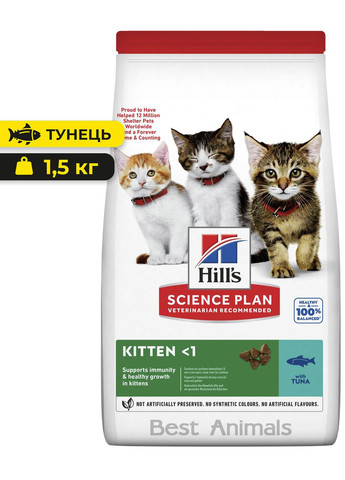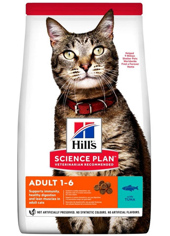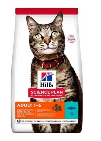 Більшість котів люблять рибу, тому сухий корм з тунцем від одного з найавторитетніших виробників лікувальних та повнораціонних кормів, компанія Hill's, дуже активно використовує рибний білок при виробництві своїх кормів. М'ясо тунця є дієтичним, гіпоалергенним та дуже корисним. Дуже важливо, що коти із задоволенням їдять корм із тунцем. Сухий корм для котів Hill's Science Plan Adult, з тунцем – спеціально розроблений для задоволення енергетичних потреб котів у розквіті сил. Виготовлений з високоякісних і легкозасвоюваних інгредієнтів. Hill's Science Plan Adult – повнораціонний сухий корм з тунцем, розроблений, щоб задовольнити потреби в харчуванні та енергії дорослих котів у віці від 1 до 6 років. Збалансований поживними речовинами корм Hill's Science Plan Adult надає все необхідне вашому коту, щоб він залишався ситим і щасливим. Підтримує імунну систему вашого улюбленця за допомогою цінної антиоксидантної формули. Крім того, омега-3 жирні кислоти підтримують здорову шкіру і блискучу шерсть, і забезпечують особливі смакові властивості раціону. Переваги та особливості: Містить вітамін E та омега-3 й омега-6 жирні кислоти для збереження здоров'я та краси шкіри та шерсті дорослого кота Таурин, незамінний для здоров’я серця, а також збалансований рівень мінералів для здоров’я нирок та сечового міхура Високоякісний білок для формування та підтримки м’язової маси дорослого кота Розроблений для підтримки оптимальної фізичної форми Виготовлено з високоякісних інгредієнтів Склад: дегідратований білок курки та індички, кукурудза, пивний рис, тваринний жир, кукурудзяний глютен, дегідратований білок із тунця, мінерали, сушена м’якоть буряка, дигест, риб’ячий жир. Добавки (на кг): залізо - 52,3 мг, йод - 2,3 мг, мідь - 5,2 мг, марганець - 5,4 мг, цинк - 81,1 мг; з натуральними антиоксидантами. Поживні речовини: білок - 31,3%, вміст жиру - 19,5%, сира клітковина - 0,96%, сира зола - 5,5%, омега-3 жирні кислоти - 0,4%, омега-6 жирні кислоти - 3,0%, кальцій - 0,89%, фосфор - 0,71%, натрій - 0,36%, калій - 0,68%, магній - 0,07%; на кг: вітамін А - 5875МO, вітамін D3 - 615МO, вітамін E - 625 мг, вітамін C - 90 мг, бета-каротин - 1,5 мг Енергетична цінність: 4058 ккал/кг Рекомендації щодо годування: Сухий корм Hill's Science Plan Adult рекомендований для дорослих котів віком від 1 до 6 років.Зміцнює імунітет, підтримує здорове травлення та м’язову масу у котів. Давати щодня з розрахунку ваги та фізичного навантаження улюбленця. Дотримуйтеся норм годування, зазначених у таблиці на пакунку, але також враховуйте індивідуальні потреби вашого кота. При переході з одного корму на інший рекомендовано робити це поступово, щоб організм тварини зміг адаптуватися до нового раціону. Поступово додавайте новий корм до попереднього, щоденно збільшуючи кількість нового корму і зменшуючи кількість попереднього, поки не відбудеться повної заміни. У середньому процес переходу на новий корм триває 5-7 днів. Корм рекомендовано пересипати у спеціальний контейнер з кришкою для зберігання харчових продуктів. Важливо! Слідкуйте за тим, щоб ваш улюбленець завжди мав доступ до чистої води! Вага тіла, кг Сухий корм, г 2 35 3 45 4 55 5 70 6 80 7 + 12 г/кг Інформація про інгредієнти й нутріентном складі корму, нормах годування на сайті є довідковою. Усю інформацію про продукт і країну походження конкретного продукту Hill's можна подивитися на упаковці.