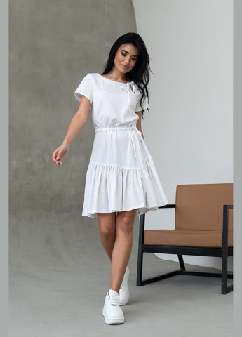 Коротенька літня сукня напівприлеглого силуету, що кокетливо розкльошується донизу, завжди залишається актуальною та модною. Класичний комір та подовжена лінія плеча створюють невимушений, але елегантний образ. Функціональна застібка на ґудзики по центру сукні дозволяє регулювати глибину декольте або висоту розрізу знизу, надаючи вам свободу у створенні різних образів. По лінії талії розташована широка куліска з тонким пояском, що підкреслює фігуру, а зручні кишені в бічних швах додають практичності. Виготовлена зі 100% льону, ця сукня ідеально підійде для спекотних літніх днів, забезпечуючи відмінну повітропроникність та легкість. Її універсальний дизайн дозволяє легко комбінувати її з різноманітним взуттям та аксесуарами, створюючи стильні та комфортні літні образи. Характеристики: Матеріал: Льон (100% льон) Крій: Напівприлеглий силует, злегка розкльошена донизу, міні довжина Комір: Класичний Рукав: Подовжена лінія плеча (короткий) Застібка: Функціональна на ґудзики по центру переду Пояс: Широка куліска по лінії талії з пояском Кишені: У бічних швах Стиль: Повсякденний, літній, модний, елегантний Властивості: Натуральна тканина, повітропроникна, легка, комфортна Сезон: Літо