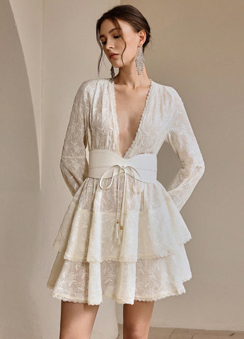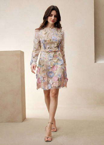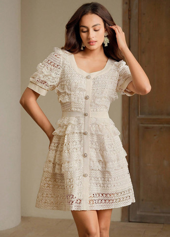 Елегантний вишитий дизайн Ця вишукана коротка сукня відрізняється складною червоною вишивкою та прозорим дизайном рукава-єпископа. Воно включає талію «риб'я кістка» і прикраси з бісеру. Сукня підходить для офіційних випадків, таких як вечірки, побачення чи особливі події. Воно має звичайний крій із квадратним вирізом та високою талією. Тканина не тягнеться та має розкльошений поділ. Деталі включають контрастну сітку та конструкцію зі складаннями.