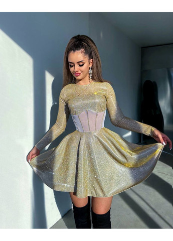 Жіноча сукня міні зі шлейфом із люрексу. Виготовлена з еластичного люрексового трикотажу. Матеріал м'який, приємний до тіла, має делікатний блиск завдяки люрексовій нитці та добре тягнеться, що забезпечує комфорт під час носіння. Сукня довжини міні з ефектним шлейфом, що створює драматичний та вишуканий силует. Будь яскравою разом з нами! Сукня, яка буде збирати всі погляди на вас. Завдяки якості матеріалу та продуманому дизайну, сукня прикрасить вас на будь-яке свято — ідеальний варіант для вечірніх виходів, урочистих заходів, побачень або святкових вечірок.