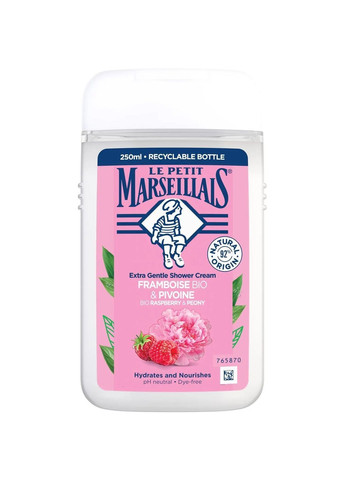 Гель для душу Le Petit Marseillais (Ле Петі Махсеє) Bio Малина та Півонія - забезпечує зволоження та харчування, роблячи шкіру м'якою та ніжною завдяки pH-нейтральній формулі. Його багата текстура з витонченим ароматом дарує відчуття свіжості та комфорту з першого застосування. Дбайливо очищає шкіру, легко змивається, залишаючи тонкий приємний аромат. Основні переваги: 92% натуральних інгредієнтів містить зволожуючий компонент рослинного походження мийні компоненти мають біорозкладну формулу (90%) флакон на 30% виготовлений із переробленого пластику та підлягає переробці прозора та екологічна упаковка без додавання барвників pH-нейтральний склад, дбайливий для шкіри дерматологічно протестовано Спосіб застосування: Нанести на вологе тіло. Спінити та змити. Характеристики Об'єм: 250 мл Виробник: Le Petit Marseillais®, Італія.