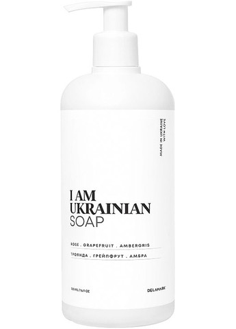 Рідке мило з ароматом троянди, грейпфруту, амбри від бренду I Am Ukrainian з першого дотику закохує у свою ніжну кремову текстуру та нішевий аромат. Парфумована композиція поєднує акорди солодко-медового свіжозрізаного трояндового букета, нотки іскристого та свіжого грейпфрута й теплі солонуваті відтінки амбри. З таким ароматним милом хочеться мити руки ще частіше, ніж зазвичай. Та ніхто вам цього і не заборонить, адже засіб має м’яку очищувальну формулу без сульфатів. Мило дбайливо очищає від бруду й себуму, пом’якшує шкіру та залишає приємне відчуття чистоти. Особливості I Am Ukrainian Soap: - підходить для миття рук і всього тіла;- алантоїн знімає почервоніння, заспокоює подразнення й сприяє швидкому загоєнню дрібних пошкоджень;- екстракт календули прискорює регенерацію клітин та усуває запалення;- екстракт зеленого чаю забезпечує потужну антиоксидантну дію;- екстракт листя алое вера живить і зволожує шкіру, зміцнює її природний захисний шар;- гліцерин глибоко зволожує руки й тіло;- підходить для щоденного застосування;- формула без SLES/SLS.