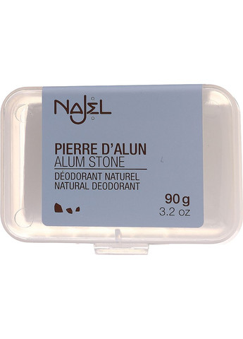 Якщо ви шукаєте природні компоненти в косметичних, гігієнічних і декоративних засобах, тоді вас може зацікавити натуральний дезодорант від французького бренда Najel. Він виготовлений без додання домішок, шляхом плавлення дрібних кристалів калієвих квасців. Ця речовина не проникає через клітинні мембрани, тому не буде накопичуватися в організмі й викликати алергії, запалення або подразнення. Najel Alum Stone Deodorant in Block нейтралізує неприємний запах шкірного покриву. Засіб не впливає на роботу залоз, не закупорює пори та потові протоки. Продукт має оригінальну форму, схожу на шматок мила. Під час контакту з водою дезодорант легко наносити на будь-яку частину тіла, освіжаючи ніжну шкіру й усуваючи запах поту. Спосіб застосування: намочити водою та після цього застосовувати в необхідній зоні.
