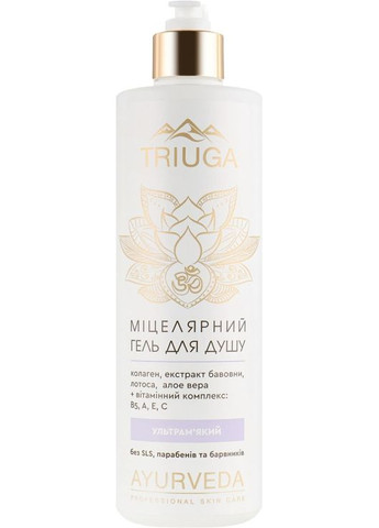 Знайти доглядовий засіб своєї мрії – складно, але абсолютно реально. Якщо ви знайомі з продукцією від Triuga, то для вас це точно посильне завдання. Український бренд робить акцент на принципах аюрведичної медицини, що безпосередньо помітно на властивостях і ефективності його косметичних продуктів. Їх відрізняє максимальна органічність – інгредієнти підбираються з ретельністю, щоб досягти оптимального впливу на шкірний покрив. Якщо ви вважаєте, що мицелярний гель «ультрам'який» – це ідеальне рішення для душа і повсякденних б'юті-процедур, то вашому вмінню робити правильний вибір можна позаздрити! Особливості Triuga Ayurveda Professional Skin Care: - дбайлива формула з нейтральним рН;- бавовняний екстракт, який надає пом'якшувальну дію;- комплекс вітамінів B5, A, E, C;- екстракт лотоса – зволоження, харчування;- алое – прекрасний антиоксидант;- делікатне очищення і захист від запалень;- усунення сверблячки і дискомфорту;- максимум свіжості під час застосування і після.