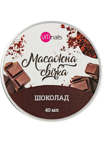 Спокусливий аромат гарячого шоколаду, цілий комплекс живильних олій та приємні ковзальні рухи в процесі масажу — це лише небагато переваг володіння свічкою для манікюру бренда ViTinails. Під час дії тепла вона дуже швидко перетворюється на ароматну олію, яка містить цілий комплекс корисних для шкіри рук, нігтів і кутикули компонентів. Особливості масажної свічки для манікюру «Шоколад» бренда ViTinails: - виготовлена з натурального соєвого воску та збагачена маслами какао, ши, кокоса, олією мигдалю, а також вітаміном Е;- під час нагрівання до оптимальної для тіла температури перетворюється на масажну олію;- глибоко зволожує й активно насичує шкіру корисними речовинами;- сприяє поліпшенню структури епідермісу;- має потужні пом'якшувальні властивості;- оздоровлює нігті;- вирізняється яскравим шоколадним ароматом.