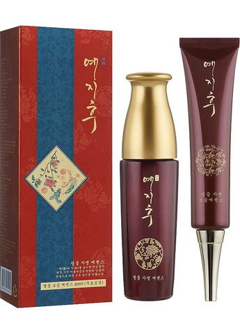 Опис Набір від зморшок з екстрактом червоного женьшеню - Yezihu Red Ginseng (essense/50ml + essense/40ml) Склад набору: інноваційна високомолекулярна сироватка від зморщок з гіалуроновою кислотою, екстрактом женьшеню, півонії, аденозином і алантоїном - Yezihu Red Ginseng Essense, 50 мл + зволожувальна сироватка - Yezihu Red Ginseng Moisture Essence, 40 мл. Дати зморшкам і ознаками старіння гідну відсіч допоможуть високоякісні засоби з набору Red Ginseng корейського бренда Yezihu. Вони забезпечать комплексний омолоджувальний догляд, зробивши шкіру підтягнутою, шовковисто-сяйною, пружною і квітучою. Крім ефективних косметичних властивостей продукти відзначаються дуже красивим і елегантним оформленням, тому можуть виконати роль приємного б'юті-подарунка. Інноваційна високомолекулярна сироватка від зморщок з гіалуроновою кислотою, екстрактом женьшеню, півонії, аденозином і алантоїном - Yezihu Red Ginseng Essense- використовується після етапу очищення;- добре освіжає, зволожує і пом'якшує шкіру;- збагачує клітини вітамінними речовинами;- не допускає виникнення сухості й лущення;- містить екстракт женьшеню, який має антиоксидантні й тонізувальні властивості, зміцнює стінки судин, прискорює мікроциркуляцію крові й зупиняє запальні процеси;- гіалуронова кислота запобігає дегідратації шкіри, розгладжує мікрорельєф і підвищує пружність;- аденозин стимулює вироблення еластину і колагену, зменшує виразність зморщок, відновлює природний бар'єр шкірного покриву;- екстракт півонії прискорює обмінні процеси й усуває почервоніння;- алантоїн захищає клітини від вільних радикалів і передчасного старіння. Зволожувальна сироватка - Yezihu Red Ginseng Moisture Essence- наноситься після крему і може використовуватися як база під макіяж;- миттєво вбирається;- забезпечує тривалий зволожувальний ефект;- запобігає виникненню стягнутості й сухості;- має протизапальні й заспокійливі властивості;- вирівнює шкірний покрив;- не допускає появи висипу і подразнення;- сприяє розгладженню зморщок;- забезпечує омолоджувальний ефект;- надає шкірі шовковисту гладенькість, рівний тон і здорове сяйво. Спосіб застосування Інноваційна високомолекулярна сироватка від зморщок з гіалуроновою кислотою, екстрактом женьшеню, півонії, аденозином і алантоїном - Yezihu Red Ginseng EssenseНаносити в незначній кількості на очищену шкіру обличчя злегка поплескувальними рухами. Використовувати після очищення і нанесення тонеру. Завершити догляд емульсією і / або кремом. Для досягнення максимального ефекту рекомендовано застосовувати з інноваційною омолоджувальною системою догляду Yezihu: тонер Yezihu, емульсія Yezihu, крем для очей Yezihu, крем для обличчя Yezihu. Зволожувальна сироватка - Yezihu Red Ginseng Moisture EssenceВикористовувати після очищення і нанесення тонеру. Кілька крапель сироватки з екстрактом червоного женьшеню Езіху зігріти в долонях і нанести на шкіру. Завершити догляд емульсією і / або кремом. Склад Інноваційна високомолекулярна сироватка від зморщок з гіалуроновою кислотою, екстрактом женьшеню, півонії, аденозином і алантоїном - Yezihu Red Ginseng EssenseAq, Glycerin, Butylene Glycol, Mineral Oil, Caprylic / Capric Glycerides, Glyceryl Stearate. PEG-100 Stearate, Cetyl Alcohol, Dimethicone, Polysorbate 60, CI 15985, Betaine, Stearic Acid, Sorbitan Stearate, Behenyl Alcohol, Phenoxyethanol, Carbomer, Triethanolamine, Fragrance, Disodium EDTA, Allantoin, Adenosine, Panax Ginseng Callus Culture Extract, Zanthoxylum Piperitum Fruit Extract, Pulsatilla Koreana Extract, Usnea Barbata (Lichen) Extract, Xanthan gum, Lecithin, Sodium Hyaluronate.