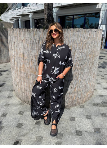 Колір Чорний / Фасон З сорочкою, Брючний / Стиль Повсякденний / Візерунок Однотонний / Матеріал Льон