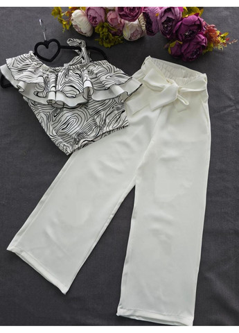 Дуже красивий костюм підлітка на дівчинку. У комплект входить: штани палаццо та піджак. Штани з кишенями, пояс. Піджак застібається на гудзик + пояс. Тканина: кашемір – ялинка.
