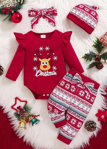Колір Червоний / Фасон Брючний / Стиль Кежуал / Візерунок Новорічний / Матеріал Бавовна