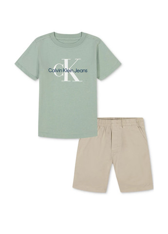 Дитячий набір Calvin Klein. Комплект складається з кофти, штанів, шапочки та пари шкарпеток. Кофта з довгим рукавом, плечі внахлест, на грудях логотип бренду, на комірі логотип бренду, що повторюється. Брюки з еластичною гумкою з логотипом. Шапочка із подвійної тканини. Спереду нашивки з логотипом бренду. Шкарпетки з логотипом. Дуже м'яка тканина. Логотип бренду у вигляді монограми по всій поверхні кофти, штанів та шапочки. Відмінна якість.
