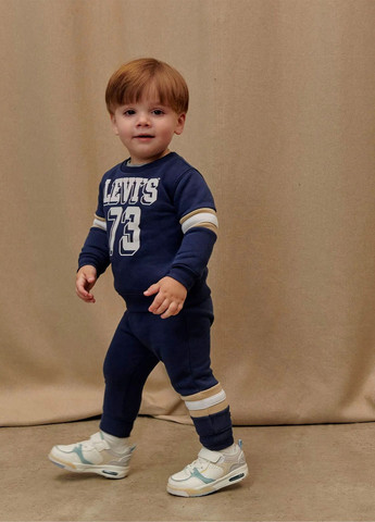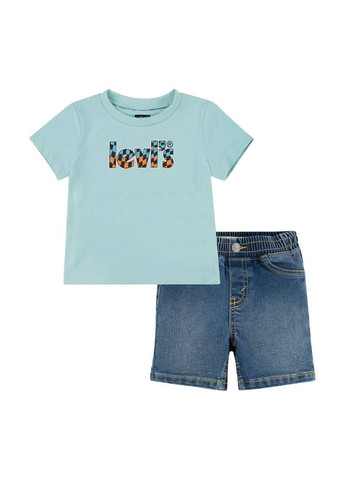 Дитячий комплект для хлопчика із колекції Levi's. Модель виготовлена з комбінованого матеріалу. Цей набір поєднує в собі моду та комфорт для ідеального затишного вбрання. Особливості: Комплект складається з толстовки, футболки та джинсів. Толстовка з вшитим капюшоном, бічними кишенями. Футболка з короткими рукавами, вирізом круглим, декорована малюнком. Джинси середньої посадки, класичного крою застібаються на блискавку та гудзик.