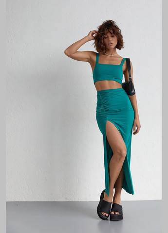 Жіночий костюм зі спідницею. Кофта вільного крою та спідниця з розрізом. Тканина: ангора, приємна на дотик.Параметри моделі на фото:86-61-94 см.Розмір моделі на фото:42.Ріст моделі на фото:169.
