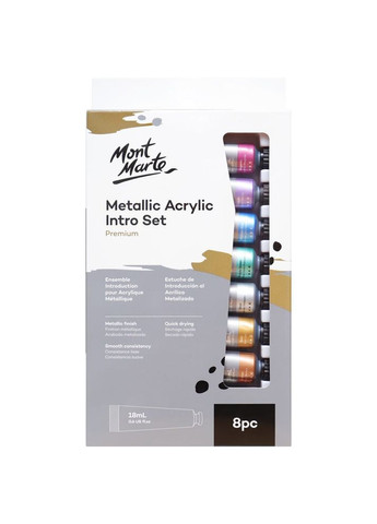 Металеві акрилові фарби Mont Marte — чудовий вибір для додавання мерехтіння та блиску вашим художнім і ремісничим проектам. Цей набір із 8 чудових кольорів має розкішний металевий блиск і підходить для різноманітних поверхонь, таких як полотно, карта та дерево. Вам сподобається гладка консистенція та привабливий фініш цих металевих акрилових фарб. Вони також забезпечують хороше покриття та швидко висихають, що робить їх придатними для використання вдома чи в класі. Зробіть свої проекти виділяючими за допомогою нашого набору. 8 металевих кольорів у тюбиках по 18 мл (золото, срібло, бронза, мідь, пурпурний, фіолетовий, фтало-синій, фтало-зелений) Розкішний металевий блиск Підходить для різних поверхонь Гладка консистенція та відмінне покриття Непрозоре металеве покриття Ідеально підходить для домашніх або шкільних проектів Швидке висихання