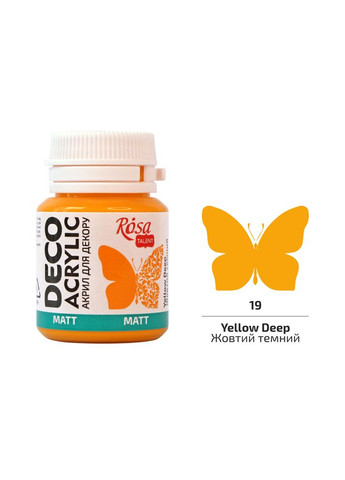 <>Акрил для декору ROSA Talent 19 Жовтий темний, матовий, 20 мл — теплий акцент для творчих ідей Глибокий <>жовтий темний відтінок (№19) — це тепла, насичена фарба з матовим ефектом, що додає натуральності та виразності декоративним елементам. Акрил <>ROSA Talent у форматі <>20 мл — це зручне рішення для невеликих хенд-мейд проєктів, декору, листівок та авторських виробів. <>Характеристики: Тип: матова акрилова фарба на водній основі Колір: жовтий темний (№19) Обʼєм: 20 мл Текстура: густа, однорідна, легко наноситься Виробник: ROSA Talent, Україна <>Переваги: Насичений колір із м’яким матовим фінішем Ідеально підходить для дерева, паперу, картону, гіпсу, тканини, полотна Добра покривна здатність — рівне нанесення без плям Стійка після висихання, не тріскається і не стирається Безпечна для дитячої творчості — не має різкого запаху Універсальна для пензля, губки, трафарету <>Застосування: Розпис деревʼяних виробів, шкатулок, іграшок Оформлення панно, листівок, рамок, декору до свят Творчість для дітей і дорослих, художні заняття Декупаж, кардмейкінг, скрапбукінг Теплі кольорові акценти в інтер'єрних деталях <>Замовляйте жовтий темний акрил ROSA Talent на Kalimbee — для глибоких і теплих рішень у декорі