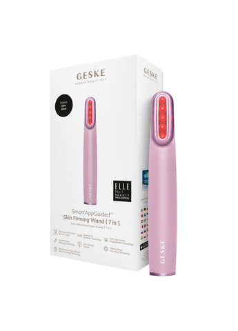 Ти можеш використовувати потужний пристрій Skin Firming Wand | 7 в 1 для зміцнення і підтягнення не тільки обличчя, але й шиї, зони декольте та рук. Щоб отримати миттєвий доступ до всіх сеансів разом з навчальними відеоматеріалами й персоналізованими рекомендаціями, завантаж безкоштовний додаток GESKE. Потужний алгоритм додатка на основі передової технології ШІ аналізує твою шкіру й рекомендує пристрої, що ідеально відповідають її потребам. Установи свої цілі догляду за шкірою відповідно до її потреб та проходь тисячі навчальних відеосеансів, щоб отримати максимальну користь від свого пристрою. Спостерігай за тим, як твоя шкіра поступово та помітно набуває досконалості з GESKE. Забудь про старіння з новим антивіковим пристроєм Skin Firming Wand | 7 в 1. Додай цю інновацію № 1 у світі краси за версією ELLE від GESKE на свій туалетний столик і спостерігай за магічним зникненням зморщок і ознак старіння.
