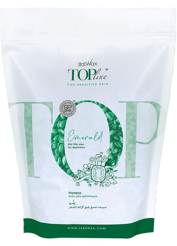 Смарагд — нове доповнення до сімейства Italwax Top Line. Плівковий віск смарагдового кольору є найбільш гнучким і еластичним у лінійці, що дозволяє наносити ультратонкі та ефективні аплікації. Теплий віск в банках забезпечує оптимальну ефективність на короткому та попередньо поголеному волоссі з першої смужки. Ідеально підходить для процедур депіляції на великих ділянках тіла, таких як руки і ноги, особливо для людей з чутливою шкірою.