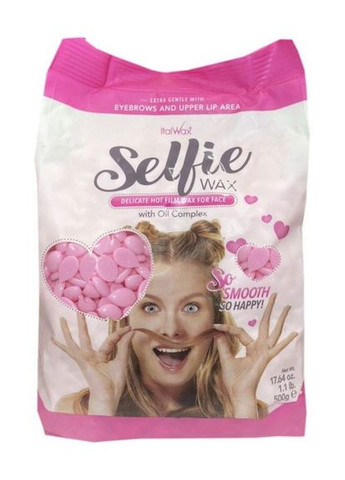Гарячий віск у гранулах Italwax Селфі (для обличчя) 500 г. — унікальна формула воску Italwax Selfie розроблена італійським виробником для депіляції волосся на обличчі, включно з так званим пушком і великими волосками. Має синтетичну основу, а також до складу входить комплекс із натуральних олій. Що дає змогу підвищити комфорт процедури. Ідеально підходить для чутливої ніжної шкіри обличчя. Італвакс Селфі дає змогу провести дбайливу процедуру депіляції обличчя, без почервоніння й подразнення навіть на найчутливіших зонах. Цей віск дуже ніжно впливає на шкіру та не викликає алергії. Ідеально підходить для процедур видалення волосся в зонах: брови, верхня губа, бакенбарди/віскова зона. Спосіб використання воску для обличчя Italwax Selfie : Розігріти віск до температури 38–40 °C. Обробити шкіру лосьйоном до депіляції, за потреби присипати трохи За допомогою вузького шпателя нанести віск. У процесі не забувайте щільно притискати шпатель і рівномірно розподіляти віск. Кінчик аплікації не притискайте, за нього потім можна буде захопитися. Зачекайте 6-10 сек . Натягніть шкіру на себе, а віск зривайте від себе. Це потрібно робити впевненим різким рухом. Повторіть цей процес в інших галузях. Зрештою, обробіть шкіру спеціальним заспокійливим лосьйоном або гелем від Ital wax.