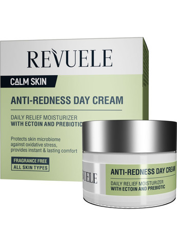 Revuele Calm Skin Anti-Redness Day Cream, 50 мл Денний крем проти почервонінь з ектоїном та пребіотиком Опис: Revuele Calm Skin Anti-Redness Day Cream — легкий зволожувальний крем, створений для щоденного догляду за шкірою, схильною до почервонінь та подразнень. Завдяки ектоїну та пребіотику він зміцнює захисний бар’єр, відновлює баланс мікробіому та допомагає боротися з окислювальним стресом. Крем швидко вбирається, не залишає жирної плівки та дарує миттєве відчуття комфорту, забезпечуючи тривале зволоження. Активні компоненти: Ектоїн — зменшує запалення, захищає клітини від пошкоджень, прискорює відновлення шкіри. Пребіотики (інулін, альфа-глюкан олігосахарид) — підтримують здорову мікрофлору та зміцнюють шкірний бар’єр. Масло ши та масло макадамії — живлять, пом’якшують та підвищують еластичність шкіри. Провітамін B5 та бетаїн — глибоко зволожують, знімають стягнутість та подразнення. Вітамін Е та бісаболол — антиоксидантний та заспокійливий ефект. Гіалуронова кислота — утримує вологу, підтримує пружність та свіжий вигляд шкіри. Рослинні протеїни (пшениця, соя) — зміцнюють та покращують текстуру шкіри. Переваги: Зменшує почервоніння та чутливість Відновлює та зміцнює захисний бар’єр Підходить для всіх типів шкіри, включно з чутливою Без віддушок — мінімізує ризик алергічних реакцій Легка текстура, ідеальна під макіяж Склад (INCI): Water / Aqua, Caprylic/Capric Triglyceride, Glycerin, Cetearyl Alcohol, Glyceryl Stearate SE, Glyceryl Stearate, Butyrospermum Parkii Butter, Macadamia Ternifolia Seed Oil, Panthenol, Betaine, Dimethicone, Ectoin, Inulin, Alpha-Glucan Oligosaccharide, Tocopherol, Bisabolol, Allantoin, Sodium Hyaluronate, Hydrolyzed Wheat Protein, Hydrolyzed Soy Protein, Pectin, Arginine, Proline, Serine, Glucose, Carrageenan, Ceteareth-20, Ceteareth-12, Cetyl Palmitate, Dimethicone Crosspolymer, Xanthan Gum, Acrylates/C10-30 Alkyl Acrylate Crosspolymer, Triethanolamine, Butylene Glycol, Caprylyl Glycol, Disodium EDTA, Phenoxyethanol, Ethylhexylglycerin. Об’єм: 50 мл Тип шкіри: Усі типи, включно з чутливою Виробник: Revuele