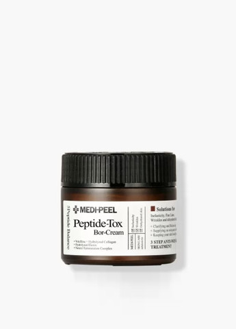 Нова версія крему Bor-Tox! іфтинг-крем з пептидним комплексом Medi-Peel Peptide-Tox Bor Cream має виражений anti-age ефект: підвищує пружність і еластичність шкіри, зменшує глибину зморщок, робить рельєф обличчя більш гладким. Уповільнює процеси старіння, підтримує тонус, глибоко живить і зволожує. Крем чинить ботоксоподібну дію: допомагає розслабити і зняти напругу з м'язів обличчя, перешкоджаючи появі зморшок і шкірних заломів. Зміцнює тургор шкіри, підтягує овал обличчя, розгладжує носогубні складки, маріонеткові лінії і "гусячі лапки". Робить шкіру щільнішою, покращує здатність клітин до утримання вологи, запобігає появі зневоднення і дегідратації. Крем має ніжну вершкову текстуру, миттєво зволожує і усуває стягнутість. Підходить для всіх типів шкіри. Спосіб застосування: На останньому етапі вашого догляду, нанесіть невелику кількість крему на все обличчя по масажних лініях, наприкінці м'яко поплескавши подушечками пальців для більш швидкого вбирання продукту. Крем підходить для щоденного застосування в ранковий і вечірній час. 50 ml
