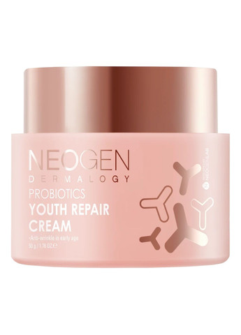 Відновлюючий крем з пробіотиками та пептидами Neogen Dermalogy Probiotics Youth Repair Cream уповільнює процеси в'янення, покращує мікробіом шкіри, посилює захисні та бар'єрні функції. Робить шкіру більш гладкою та пружною, м'яко освітлює та вирівнює тон, усуває тьмяність та почервоніння. Крем глибоко зволожує, підтримує оптимальний водноліпідний баланс, не допускає утворення сухості та зневоднення. Зміцнює волокна епідермісу, заповнює цілісність шкірних покривів, активізує процеси відновлення та регенерації. Підтримує бар'єрні та захисні функції, утворює невидимий бар'єр, що оберігає від агресивної дії ультрафіолету, вільних радикалів, забруднень, пилу та інших факторів довкілля. Крем має легку текстуру, легко розподіляється по шкірі і швидко вбирається, моментально усуваючи стягнутість і не залишаючи жирної плівки. Основні діючі інгредієнти: Лізат ферменту лактобактерій підтримують природну мікрофлору, покращують структуру колагену, підвищуючи пружність. Поліпшують колір обличчя, регулюють вироблення меланіну, освітлюють гіперпігментацію. Комплекс пептидів нормалізує вироблення колагену та еластину, розгладжує, вирівнює рельєф. Покращує колір шкіри, надає їй здорового сяйва і пружності. Ніацинамід сповільнює доставку меланіну до епідермісу, запобігає утворенню пігментних плям. Знижує чутливість до зовнішніх подразників, сприяє виробництву колагену та підвищенню щільності. Комплекс церамідів зміцнює клітини та захищає їх від пошкоджень, запобігає випару вологи і сприяє тривалому зволоженню, підтримує оптимальний гідроліпідний баланс. Лізат ферменту біфіду відновлює мікрофлору епідермісу, покращує регенерацію та оновлення клітин, підвищує захисні властивості, утворює бар'єр, що перешкоджає впливу агресивних факторів навколишнього середовища. Зупиняє передчасне старіння, посилює мікроциркуляцію та сприяє синтезу колагену. Лізат стрептококів прискорює поділ клітин, зміцнює волокна епідермісу, покращує текстуру шкіри. Покращує бар'єрні функції, підвищує імунітет, знижує реактивність. 8 видів гіалуронової кислоти проникають у глибокі шари епідермісу, активно зволожують, сприяють утриманню вологи. Утворюють захисний шар, який не дає випаруватися волозі. Гідролізований колаген відновлює структуру епідермісу зсередини, зміцнює стінки клітин, покращує білковий обмін. Підтримує матрикс шкіри, розгладжує зморшки та заломи. Молочна кислота крім легкого відлущування відмінно зволожує і сприяє синтезу церамідів. За рахунок цього зміцнює ліпідний бар'єр і розгладжує дрібні зморшки, покращує колір обличчя. Комплекс амінокислот зміцнює волокна епідермісу, відновлює пошкоджені тканини, робить шкіру щільною та пружною. Підходить для всіх типів шкіри, у тому числі для чутливої. Спосіб застосування: нанесіть крем як завершальний етап догляду. Об'єм: 50 г.