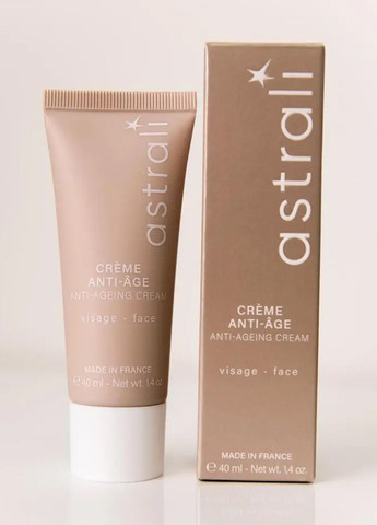 Astrali Creme Anti-Age 40ml | Крем проти зморщок Антивіковий омолоджувальний крем Авокадо, календула та звіробій, посилені наявністю особливого пептиду, утворюють потужну команду для глибокої та повної антивікової дії. Ці потужні активні інгредієнти уповільнюють появу ознак природного старіння шкіри та усувають перші зморшки. День у день риси обличчя м'яко згладжуються, зморшки зникають, а овал обличчя стає пружнішим. Зберігайте свою молодість день у день з Astrali. Підходить для всіх типів шкіри з ознаками старіння й в'ялості. Creme Anti-Age Astrali — щільна текстура, що підіймає, дуже м'яка із зеленими, пудровими та квітковими ароматами апельсинового цвіту та троянди. Антивіковий крем лінії Astrali на 88% складається з інгредієнтів натурального походження ДІЯ Глибока та повна омолоджувальна дія Сповільнює появу ознак старіння Розгладжує риси обличчя та розгладжує зморшки ОСНОВНІ КОМПОНЕНТИ Пептид: стимулює синтез колагену й еластину, впливає на пружність Олія авокадо: має пом'якшувальні, антиоксидантні та поживні властивості. Календула: покращує мікроциркуляцію й лікує, стимулюючи синтез колагену Звіробій: протизапальна та загоювальна Спосіб застосування Вранці та/або ввечері наносьте крем проти старіння Creme Anti-Age Astrali на очищену шкіру обличчя, шиї та декольте легкими поплескувальними рухами.