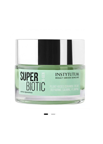 Instytutum Super Biotic — відновлювальний крем із керамідами та комплексом пре- і пробіотиків. Ультравідновлювальний зволожувальний крем на основі керамідів зміцнює захисний бар'єр, відновлює баланс мікробіому, у такий спосіб захищаючи шкіру від щоденних подразників. ОПИС: Відновлює і зміцнює захисний бар'єр шкіри. Підтримує баланс мікробіому. Стимулює синтез колагену. Потужний антиоксидантний ефект. Заспокоює шкіру та зменшує почервоніння. Насичує вологою й утримує її. Надає шкірі здорового сяйва. Завдяки унікальній формулі з вмістом біосумісних керамідів, омега-жирних кислот, сквалану та поліглутамінової кислоти — шкіра залишається доглянутою, добре зволоженою, гладкою й еластичною. Високоефективний 3%-й пре- і пробіотичний комплекс відновлює баланс шкіри, запобігає глікації та забезпечує природний, здоровий і сяйливий тон обличчя. Екстракт гриба альбатрелусу миттєво знімає почервоніння, а в поєднанні з заспокійливою олією дворічної енотери та провітаміном B5 допомагає шкірі краще справлятися з наслідками стресу та підвищеною чутливістю. Завдяки високому вмісту антиоксидантів, потужні адаптогени чормоя й дамаської троянди борються з негативним впливом вільних радикалів. СПОСІБ ЗАСТОСУВАННЯ: Наносьте крем двічі на день на очищену шкіру обличчя, шиї та зону декольте. Інгідієнти: - КЕРАМІДИ РОЗУМНОГО ПРОСХОДЖЕННЯ - 3% КОМПЛЕКС ПРЕ-ТА ПРОБІОТИКІВ - ПЛОДИ ЧОРОМИЙ - РОЗА ДАМАЧНА - ДЕРМОХЛОРЕЛА - Екстракт бурих водоростей - ЕКСТРАКТ ГРИБА АЛЬБАТРЕЛЛУСА - ЕКСТРАКТ ЕНОТЕРИ ДВОГОДНОЮ