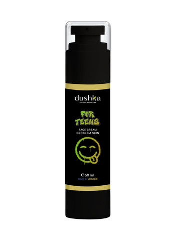 Натуральний крем для дбайливого догляду за проблемною шкірою обличчя підлітків. Виготовлений з натуральних компонентів, ретельно підібраних згідно з особливостями та потребами підліткової шкіри. Крем допомагає у боротьбі з дерматологічними недоліками шкіри: прибирає висипання, усуває та попереджає запалення, регулює роботу сальних залоз, надає протимікробну дію. Має натуральний безпечний склад, не містить парабенів і спирту, підходить для догляду за шкірою дівчат і хлопців-підлітків. Основні активні компоненти підліткового крему для проблемної шкіри Dushka: олія лавра, саліцилова кислота, ніацинамід (форма вітаміну В3), ефірна олія чайного дерева, ефірна олія розмарину. Важливо! Рекомендуємо чергувати крем для проблемної шкіри зі зволожувальним кремом: через 2-3 тижні використання варто зробити паузу та протягом тижня користуватись зволожувальним кремом, після цього за необхідності можна знову повернутись до крему для проблемної шкіри. Для кращого ефекту та повноцінного догляду за шкірою підлітка рекомендуємо використовувати всю підліткову серію засобів Dushka для «Для проблемної шкіри» (пінка або гель для вмивання, тонік, сироватка, крем).