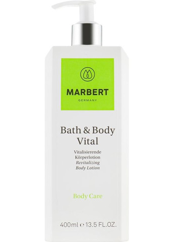 Живильний лосьйон для тіла Marbert Bath & Body Vital – джерело цілющої вологи і пружності шкіри, багатий на вітаміни і жирні омега-кислоти. Масло ши бореться з сухістю і відновлює епідерміс після інтенсивного впливу негативних факторів навколишнього середовища. Воно також стимулює вироблення «білків молодості» – колагену і еластину. Кофеїн, що наділений потужними лімфодренажними властивостями, спалює жирові відкладення і підвищує пружність шкіри. Алантоїн і ніацинамід мають протизапальну дію, покращуючи стан чутливої і жирної шкіри. Розкішний деревно-трав'яний аромат дарує відчуття легкості і оновлення, яке допомагає знайти гармонію тіла і душі. Особливості Marbert Bath & Body Vital Body lotion: - нормалізує рН-баланс; - відновлює шкіру після інтенсивного впливу UV-випромінювань, вітру і морозу; - позбавляє від сухості, лущення і відчуття стягнутості; - підвищує пружність і еластичність; - зменшує вираження апельсинової кірки; - знімає почервоніння; - надає шкірі бархатистість і матовість; - швидко всотується і не залишає жирних слідів на одязі.