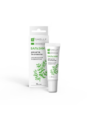 Укріплюючий бальзам для нігтів з бісабололом та евкаліптом із серії Professional Care від бренда Shelly — продукт, спрямований на зміцнення та живлення кутикули. Комплекс натуральних олій у складі засобу сприяє швидкому відновленню та зміцненню нігтьової пластини, загоєнню ран і мікротріщин на шкірі. Засіб запобігає розшаруванню, ламкості нігтів і захищає від шкідливого впливу мийних засобів. Завдяки конструктивному відновленню бальзам дає змогу легко виконати манікюр. Особливості бальзаму для нігтів з бісабололом та евкаліптом від Shelly: - робить шкіру навколо нігтя доглянутою і зволоженою; - швидко регенерує, загоює рани та пошкодження, запобігає розшаруванню;- зручний спосіб використання, який дає змогу турбуватися про красу рук у домашніх умовах;- має натуральний склад: бісаболол, ефірні олії лаванди, евкаліпта і розмарину, вітамін Е;- бісаболол має заспокійливий і антибактеріальний ефект, знімає запалення, перешкоджає розвитку інфекції;- олія лаванди живить корисними мікроелементами; - олія розмарину пом’якшує та відлущує огрубілості й стимулює ріст нігтів; - олія евкаліпта регенерує пошкоджені тканини.