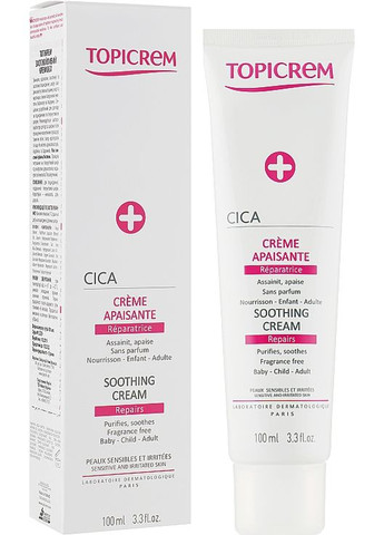 Крем від бренда Topicrem розроблений для заспокійливого догляду за пошкодженою, подразненою, гіперчутливою шкірою і слизовою оболонкою. Він може застосовуватися після агресивних косметологічних процедур, тривалої інсоляції і механічних травм шкірного покриву. Головними діючими компонентами стали глюконат цинку, міді та марганцю в концентрації 2,4%, гіалуронова кислота (0,1 %), бджолиний віск (2,5%), бісаболол (0,5%) і Гліцерин (5%). Інгредієнти миттєво знімають неприємні відчуття, загоюють, заспокоюють і зволожують епідерміс. Особливості Topicrem CICA Repair Soothing Cream: - забезпечує 24 години глибокого зволоження;- загоює ранки і тріщинки протягом 3-х днів;- миттєво заспокоює подразнення;- захищає від агресивного впливу зовнішнього середовища;- зменшує чутливість шкірного покриву;- є повністю безпечним для дорослих і дітей;- формула без парабенів, ароматизаторів, барвників;- забезпечує відновлення цілісності тіла;- дарує відчуття комфорту.