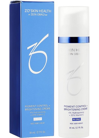 Відбілюючий крем для шкіри обличчя і тіла від американського бренда Zein Obagi виготовлений спеціально для ефективного усунення пігментних плям і дрібних недосконалостей, спровокованих агресивним впливом зовнішніх, внутрішніх факторів. Zo Skin Health Pigment Control Cr?me забезпечує якісну ексфоліацію, одночасно прискорюючи регенерацію тканин і клітинне оновлення. Крім цього, універсальний засіб прекрасно справляється зі зволоженням і живленням епідермісу, зміцненням його гідроліпідної мантії і захисного бар'єру. Особливості Zo Skin Health Pigment Control Cr?me від бренда Zein Obagi: - чудовий варіант для профілактики хлоазми, мелазми, веснянок, лентіго;- гліколева кислота значно зменшує і запобігає гіперпігментації;- аскорбінова кислота якісно вирівнює тон і рельєф шкіри;- позбавляє її від дрібних недосконалостей, ознак дегідратації;- забезпечує ефективне пом'якшення огрубілих ділянок шкіри;- екстракт броколі та олія насіння соняшнику прискорюють відновлення пошкоджених зон;- аскорбіл пальмітат має антиоксидантну дію;- уповільнює утворення вільних радикалів, перших вікових змін;- гліцерин інтенсивно зволожує і глибоко живить;- нормалізує і підтримує гідробаланс;- на 4% складається з гідрохінона, який пригнічує виробництво пігменту;- містить екстракт листя буквиці лікарської, бета-глюкан і сапоніни;- активно бореться з почервонінням, подразненнями і запаленнями.