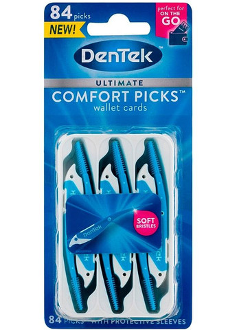 Опис Зубочистки кишенькові - DenTek Pocket Picks Кишенькові зубочистки DenTek Pocket Picks - маленькі, зручні, ергономічні та гігієнічні аксесуари, які допоможуть швидко відновити комфорт у порожнині рота після прийому їжі. Зубочистки DenTek допоможуть швидко відновити чистоту порожнини рота і повернути відчуття комфорту. Аксесуари виготовлені з міцних високоякісних матеріалів, зручні та ефективні у застосуванні, ергономічний дизайн передбачає міцність і захист від можливих розломів. Особливості кишенькових зубочисток від DenTek: - кожна карта-упаковка містить 11 зубочисток; - 5 прямих зубочисток: видаляють часточки їжі та стимулюють ясна; - 4 зубочистки з щетинками: щетинки легко ковзають між зубами, м'яко і ефективно видаляють залишки їжі та зубний наліт; - 2 вигнуті зубочистки рекомендується використовувати для очищення важкодоступних ділянок; - компактна упаковка-карта дає змогу покласти зубочистки в кишеню, гаманець, портмоне, «бардачок» автомобіля або дорожню сумку; - у комплекті передбачені 5 захисних чохлів для захисту кишенькових зубочисток від пилу і інших забруднень; - міцна конструкція; Спосіб застосування Помістіть зубочистку між зубами і м'яко притисніть її до ясен. Рухами вперед-назад видаліть часточки їжі та зубний наліт.