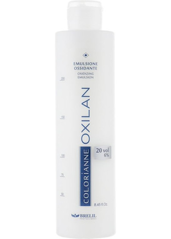 Окисна емульсія OXILAN Brelil призначена для професійного фарбування волосся. Засіб випускається у різних концентраціях: 1,5% (5 vol), 3% (10 vol), 6% (20 vol), 9% (30 vol) та 12% (40 vol). Це дозволяє підібрати оптимальний варіант для будь-яких типів фарбування та освітлення. Завдяки формулі, збагаченій емульгатними речовинами, окислювальна емульсія не тільки забезпечує бездоганний результат фарбування, але й надійно захищає та кондиціонує волосся. Склад емульсії включає компоненти, які забезпечують м'який і рівномірний розподіл фарбуючих пігментів, мінімізуючи пошкодження волосся. Активні інгредієнти емульсії глибоко зволожують та живлять волосся, що особливо важливо при частому фарбуванні. Фарба, використана в дуеті з окислювачем OXILAN, довше зберігає свою насиченість і яскравість, запобігаючи швидкому вимиванню пігменту. Переваги окислювальної емульсії OXILAN Brelil: Забезпечує насичений та рівномірний колір по всій довжині волосся Знижує ризик пошкодження волосся при фарбуванні, зберігаючи його структуру Доглядає волосся, покращуючи текстуру і надаючи здорового блиску Густа текстура, що легко розподіляється, дозволяє уникнути потоків Легко поєднується з барвниками і наноситься на волосся Спосіб застосування: Тільки для професійного застосування! Застосовувати з барвниками PRESTIGE, SERICOLOUR та продуктами, що знебарвлюють. Пропорції змішування вказано в інструкції із застосування барвників.