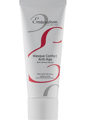 Embryolisse Anti-Age Comfort Mask - ефективний борець зі старінням шкіри жінок після 30 років. Засіб здатний забезпечити продуктивний антивіковий догляд для всіх типів шкірного покриву і швидко повернути обличчю неймовірне сяйво молодості. Він має ніжну консистенцію, завдяки якій здатний забезпечити б'юті-процедурам максимальний комфорт і приємні відчуття. Маска для обличчя популярного французького бренда Embryolisse містить живильні рослинні олії, гіалуронову кислоту і вітамін Е. Цей цінний склад забезпечує шкірі інтенсивне зволоження, активно пом'якшує і розгладжує зморшки. Регулярне застосування продукту гарантує збереження привабливості та молодості на довгі роки. Спосіб застосування: нанести на очищену шкіру обличчя і шиї, за винятком ділянок навколо очей. Через 15-20 хвилин змити теплою водою.