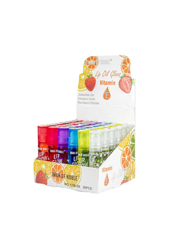 Зволожуючий блиск для губ кульковий фруктовий у наборі Iman of Noble Lip Oil Gloss у наборі 36 шт Увага! Цей товар продається лише упаковкою 36 штук. Ціна вказана на упаковку. Бальзам для губ З приємним фруктовим ароматом Iman of Noble Lip Oil Gloss зволожує, захищає ваші губи, відновлює та розгладжує тонку шкіру. У складі міститься вітамін Е, який ніжно доглядає вашу шкіру, допомагає зберегти молодість і здоров'я, захищає від впливу зовнішніх факторів — навколишнього середовища, вітру, сонця. Біля блиску шість приголомшливих фруктових ароматів: кавун, ананас, ягоди, виноград, вишня, полуниця. Завдяки кульковому аплікатору блиск наноситься легко та точно. Ваші губи виглядають свіжими, гладкими та зволоженими навіть без макіяжу. Спосіб застосування: Нанесіть блиск на очищену шкіру губ. Кількість у наборі: 36 шт., об'єм одного тюбика - 7 мл
