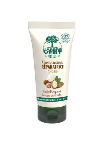 Крем для рук L'Arbre Vert (Л'Арбре Верт) - це відновлювальний засіб, спеціально розроблений для інтенсивного догляду за шкірою рук. Основні переваги: збагачений аргановою олією, яка містить велику кількість жирних кислот та вітамінів, крем ефективно зволожує і живить шкіру, допомагаючи відновити її м'якість і гладкість формула крему допомагає відновити суху, пошкоджену або подразнену шкіру рук, забезпечуючи їй потрібний догляд і захист крем має багату текстуру, яка швидко вбирається в шкіру, зволожуючи її та залишаючи відчуття м'якості та комфорту крем має приємний аромат, що зробить процес догляду за руками ще приємнішим завдяки своїм властивостям, крем можна використовувати щодня, особливо в періоди, коли шкіра потребує додаткового догляду Спосіб застосування: нанесіть на очищену шкіру, розподіліть круговими масажними рухами до повного вбирання. Характеристики Виробник: L'Arbre Vert, Франція.