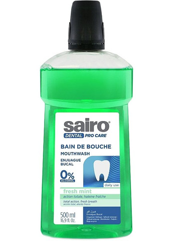 Опис Ополіскувач для ротової порожнини "Свіжа м'ята" Освіжальний ополіскувач для ротової порожнини Sairo Fresh Mint створений для тих, хто цінує чистоту, свіжість подиху, дбайливий догляд за здоров’ям ротової порожнини. Завдяки унікальній формулі цей продукт від іспанського бренда Sairo забезпечує комплексний догляд, попереджає появу карієсу та неприємного запаху з рота. Використання ополіскувача є простим та ефективним способом підтримати гігієну ротової порожнини на високому рівні, додати свіжості подиху. Особливості Sairo Fresh Mint Mouthwash: - містить гідрогенізовану рицинову олію, яка має заспокійливі властивості, сприяє зміцненню ясен;- до складу входить ментол, який надає продукту приємний аромат, забезпечує тривале відчуття свіжості та чистоти;- допомагає підтримувати оптимальний рН-баланс у ротовій порожнині, захищає зуби від карієсу завдяки дії молочної кислоти;- регулярне використання ополіскувача допомагає запобігати утворенню карієсу;-ефективно нейтралізує запах, залишає подих свіжим на тривалий час;- не містить алкоголю;- м’яко діє на чутливі ясна і зуби, зменшує подразнення і алергічні реакції; - допомагає зменшити ризик утворення зубного нальоту та гінгівіту;- сприяє зменшенню запалень, захищає чутливі ясна. Спосіб застосування Налити в склянку 20 мл (4 чайні ложки). Полоскати рот протягом 30 секунд. Не розбавляти. Не ковтати. Склад Aq, PEG-40 Hydrogenated Castor Oil, Sodium Levulinate, Sodium Benzoate, Aroma, Menthol, Sodium Saccharin, Sodium Fluoride, Lactic Acid, Dichlorobenzyl Alcohol, Sodium Lauryl Sulfate, Chlorhexidine Digluconate, FD&C Yellow 5 (CI 19140), FD&C Blue 1 (CI 42090)