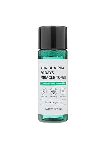 Чи можна повернути шкірі гладкість, м'якість без вугрового висипу і комедонів? Так, якщо використовувати тонер AHA. BHA. PHA 30Days Miracle від бренда Some By Mi, який створить справжнє диво з вашою шкірою! Комплекс АНА, ВНА і РНА кислот допоможе позбутися шкірних недоліків, вирівняти тон і підтягнути контури обличчя лише за 30 днів! Особливості AHA. BHA. PHA 30Days Miracle Toner Some By Mi: - відлущує ороговілі клітини епідермісу;- відновлює рельєф шкіри;- ефективно бореться з акне;- усуває комедони, вугровий висип, гнійні запалення;- вбиває шкідливі бактерії і мікроби, не даючи їм розмножуватися;- активізує процес регенерації;- підходить для чутливої, жирної, сухої шкіри;- нормалізує роботу сальних залоз;- позбавляє сальних пробок і куперозу;- контролює вироблення шкірного себуму зсередини;- підходить для щоденного застосування.