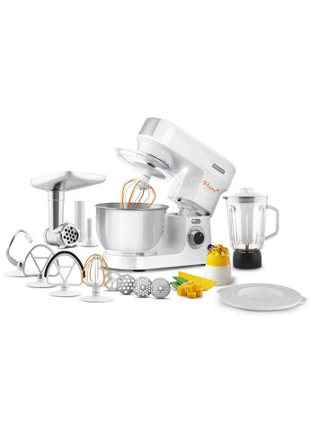 Кухонний комбайн Міцний суцільнометалевий корпус із металевими механізмами передачі. Винятково потужний двигун 1500 Вт з гарантією на 6 років. Унікальне світлодіодне підсвічування внутрішнього об'єму чаші для відмінного контролю консистенції тесту. Планетарний суцільнометалевий редуктор для тихої роботи та тривалого терміну служби Sencor Smart Power & Energy – для оптимальної швидкості обертання у будь-якій ситуації. Планетарна система замісу, перемішування та збивання Регулювання обертів обертання, що змінюється, з плавним пуском і шістьма швидкісними режимами. Функція імпульсу для максимальної максимальної потужності. Чаша з нержавіючої сталі 6 л зі шкалою та рукояткою /до 4 кг тіста для здобного кексу та до 2,6 кг хлібного тіста/ 3 металеві насадки для замісу, збивання, легкого тіста та кремів. Спеціальна гнучка насадка FLEXI для замішання легкого теска та кремів. Збивання від 2 до 18 яєчних білків (розмір яєць М). Перемелювання м'яса та набивання копченостей М'ясорубка для дрібного, середньо грубого і грубого помелу насадки обертаються навколо власної осі і одночасно навколо осі редуктора гарантує перемішування всього вмісту чаші без залишку дозволяє переробляти 100% об'єму чаші, ніж гарантує бездоганне перемішування продуктів. Насадка для виробництва ковбас, дві ширини. Насадка для приготування печива Скляна чаша міксера на 1,5л. 4 масивні барабанні терки з нержавіючої сталі для відмінної дрібної та грубої шатківниці, нарізки скибочками, приготування тертих сухарів, натирання картоплі тощо. Світлодіодне підсвічування об'єму чаші для відмінного контролю консистенції тесту. Прозора кришка чаші з отвором для додавання продуктів під час змішування. Пластмасова кришка нержавіючої чаші для практичного помешкання в холодильник. Запобіжник фіксації відкидного важеля у верхній позиції для зручної заміни приладдя. Штикова система кріплення насадок дозволяє швидко вдягати та змінювати їх. Безпека на першому місці Відмінна стабільність завдяки суцільнометалевому виконанню та нековзним ніжкам. Температурний запобіжник захищає двигун від перегріву та можливого пошкодження. Запобіжники запобігають випадковому включенню у відкритому положенні. Кришки передач забезпечують максимальний стандарт безпеки. Всі пластмасові деталі можна помістити в посудомийну машину і заощадити ваш час. Виробник може змінювати властивості, характеристики, зовнішній вигляд і комплектацію товарів без попередження.